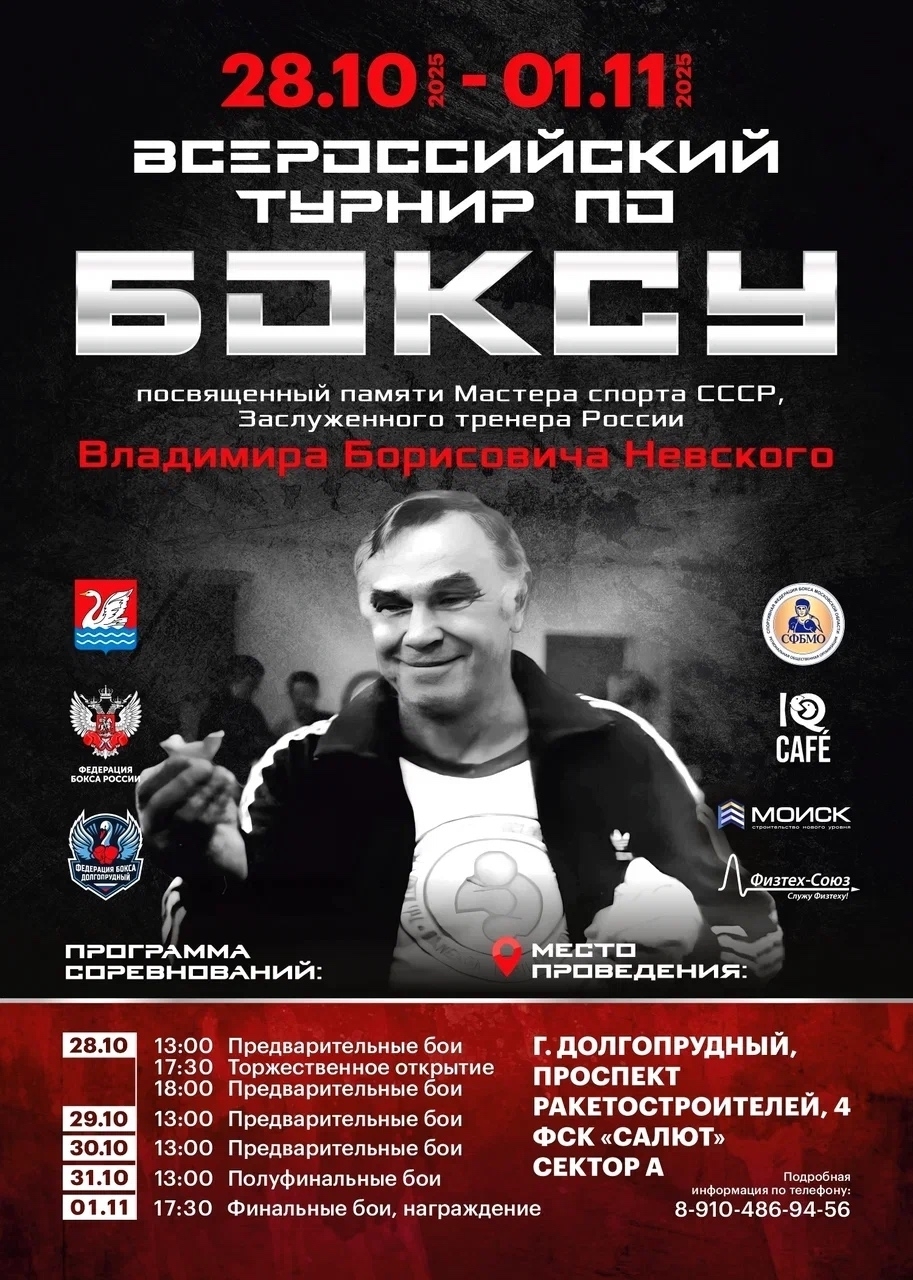 С 28 октября по 1 ноября на базе Физкультурно-спортивного комплекса «Салют» проходят Всероссийские соревнования по боксу, посвященные памяти Мастера спорта СССР, Заслуженного тренера России Владимира Борисовича Невского.